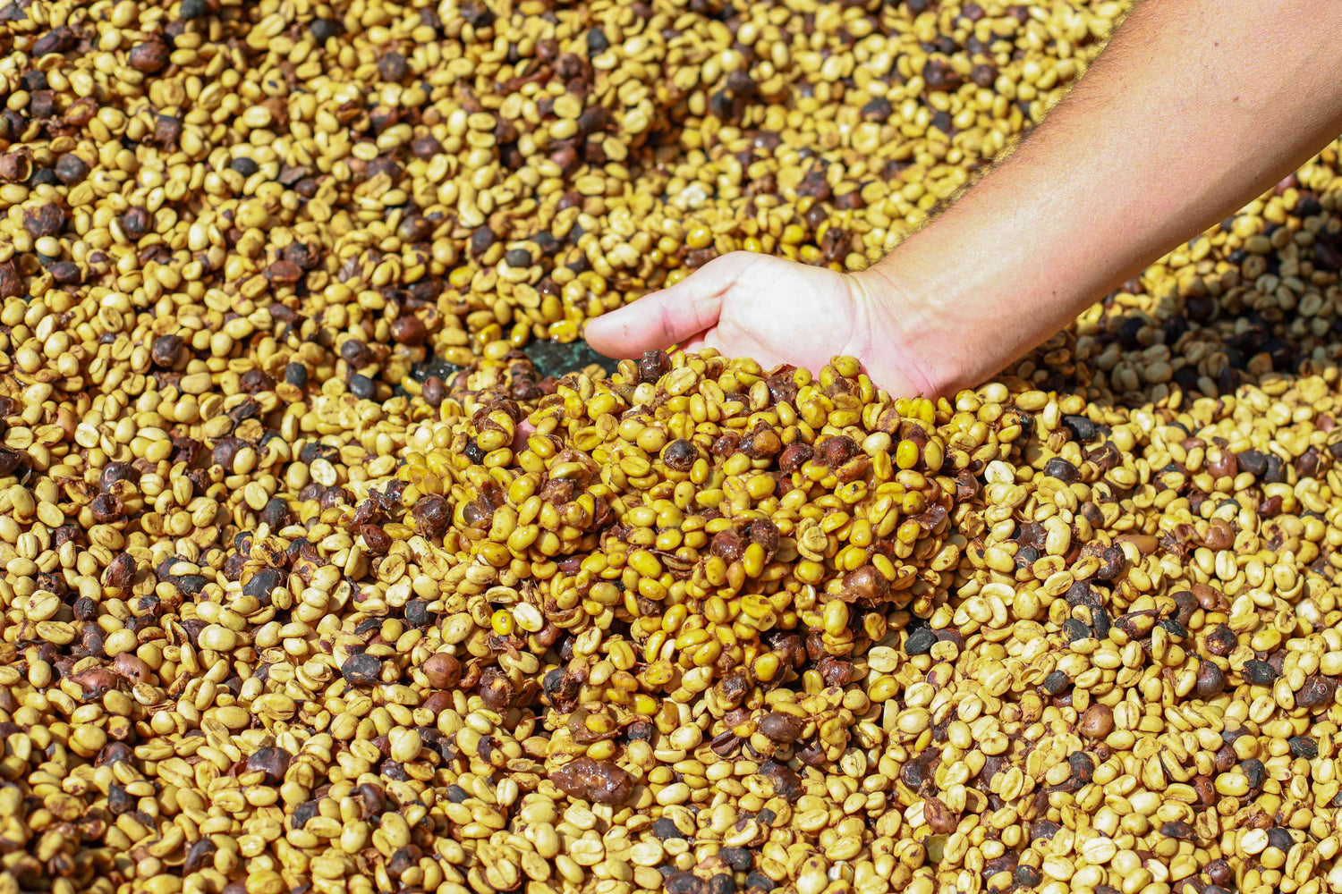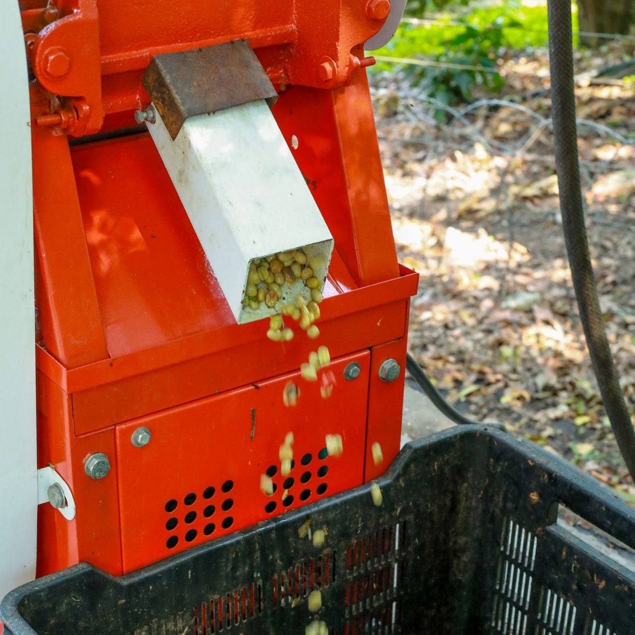 Once harvested, the beans are depulped, separating the red cherry skin from the coffee bean.